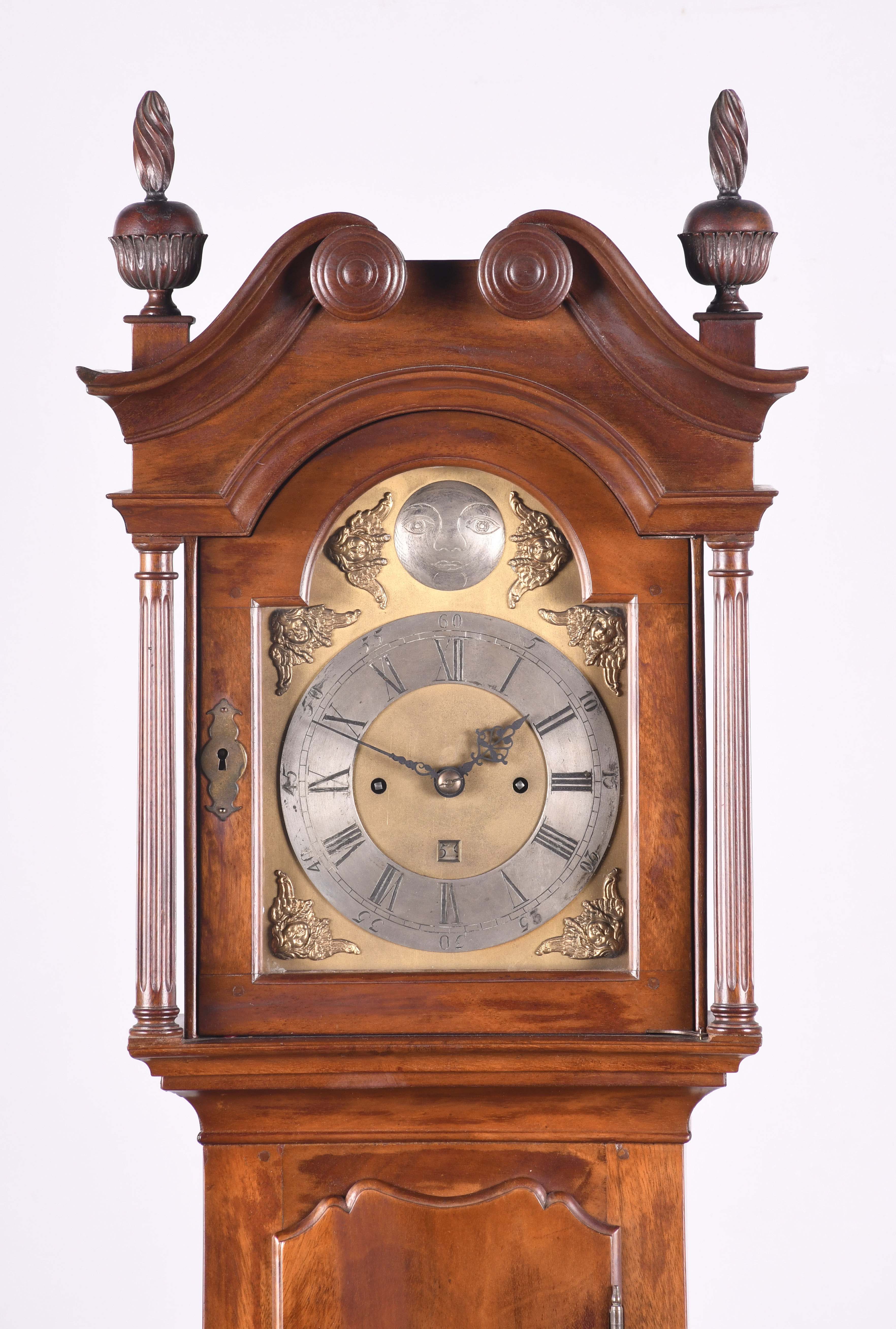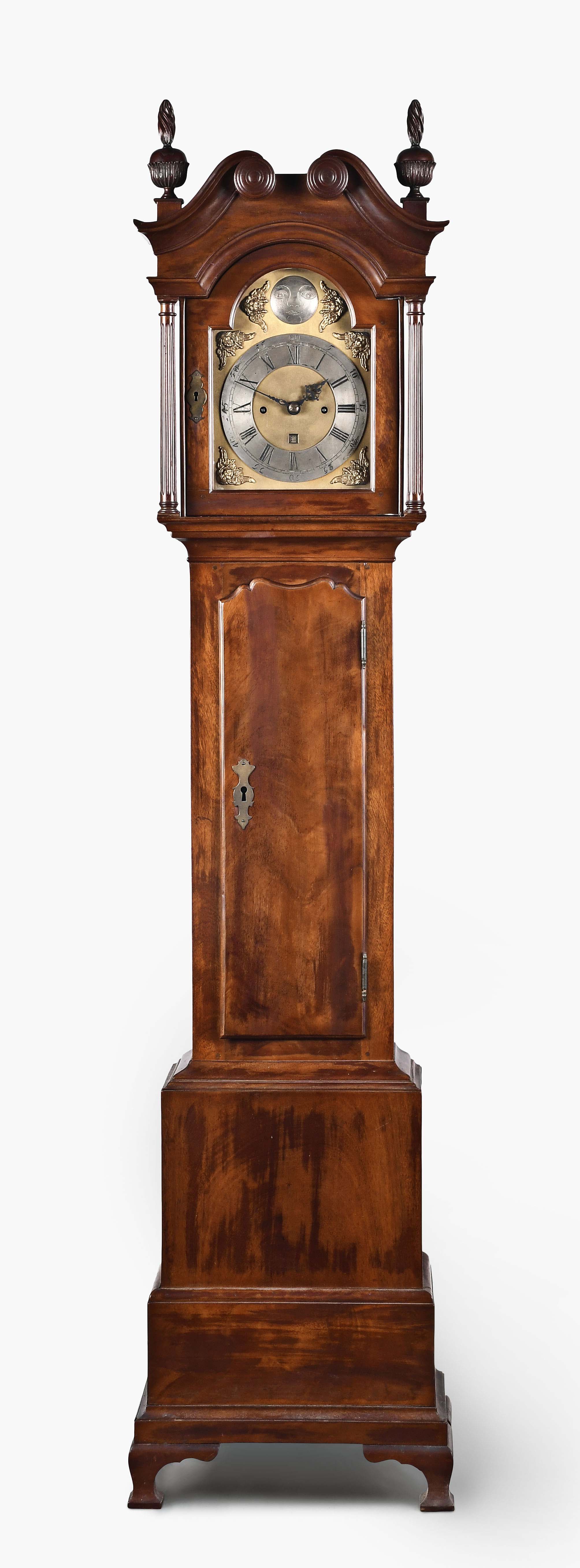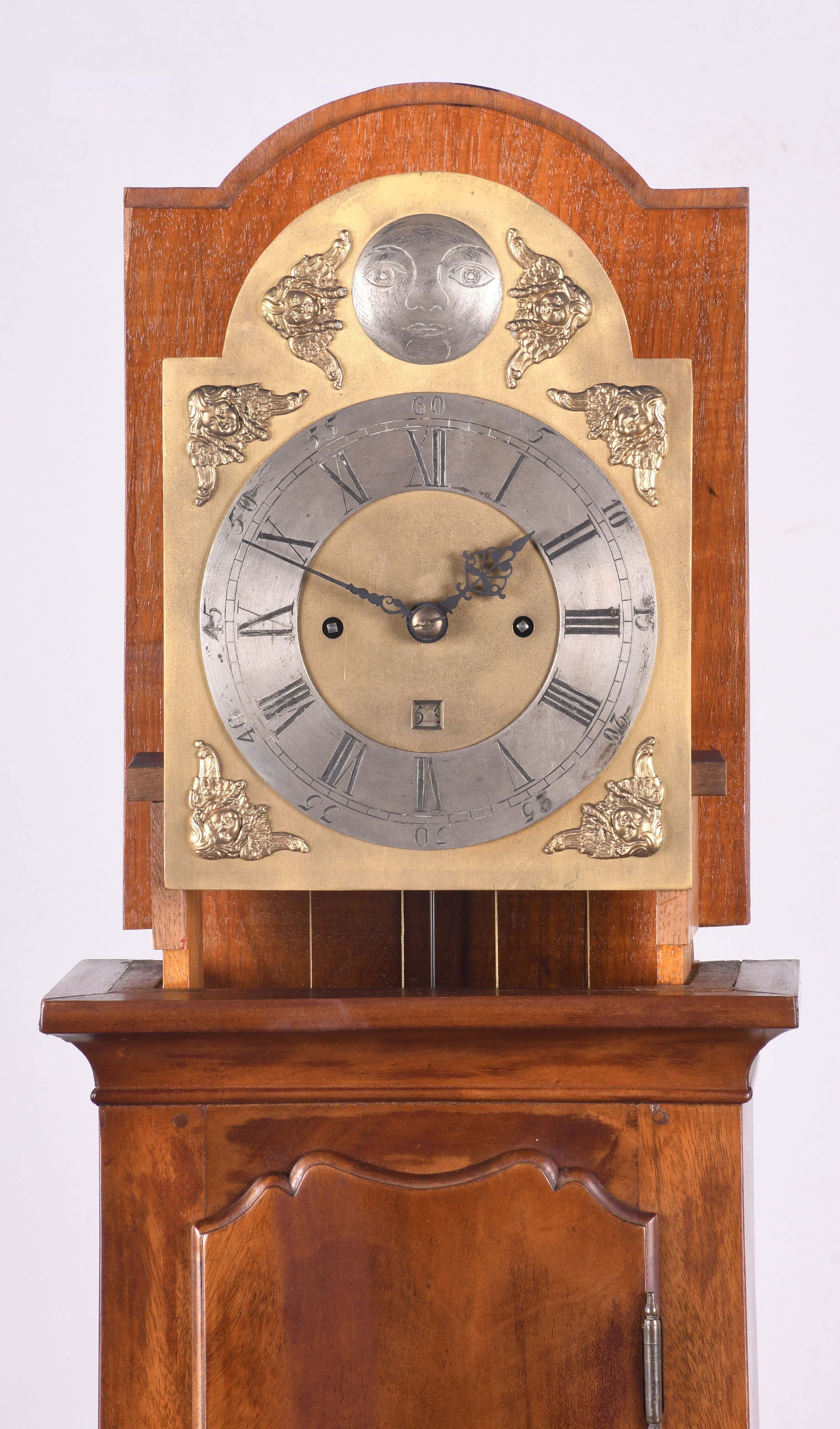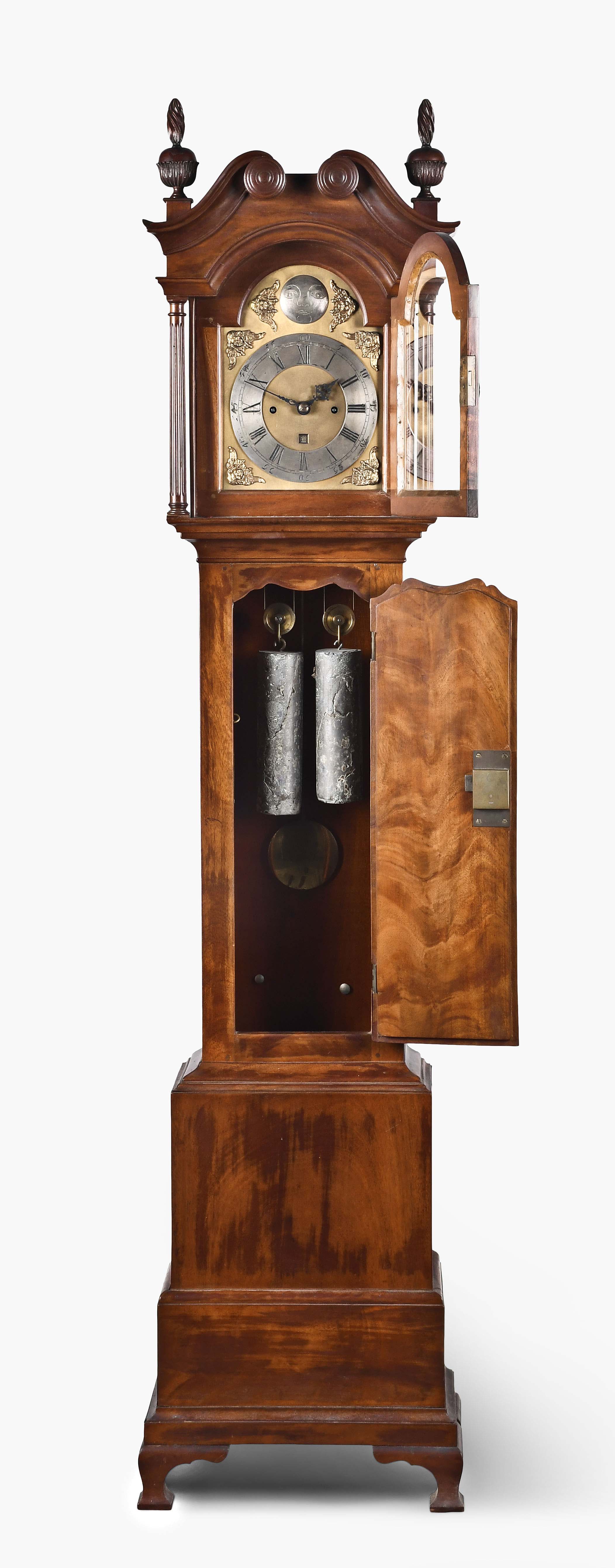 excellent original condition with clean case and finish; dial silvering slightly tarnished; original weights and pendulum; a handsome clock with good proportions