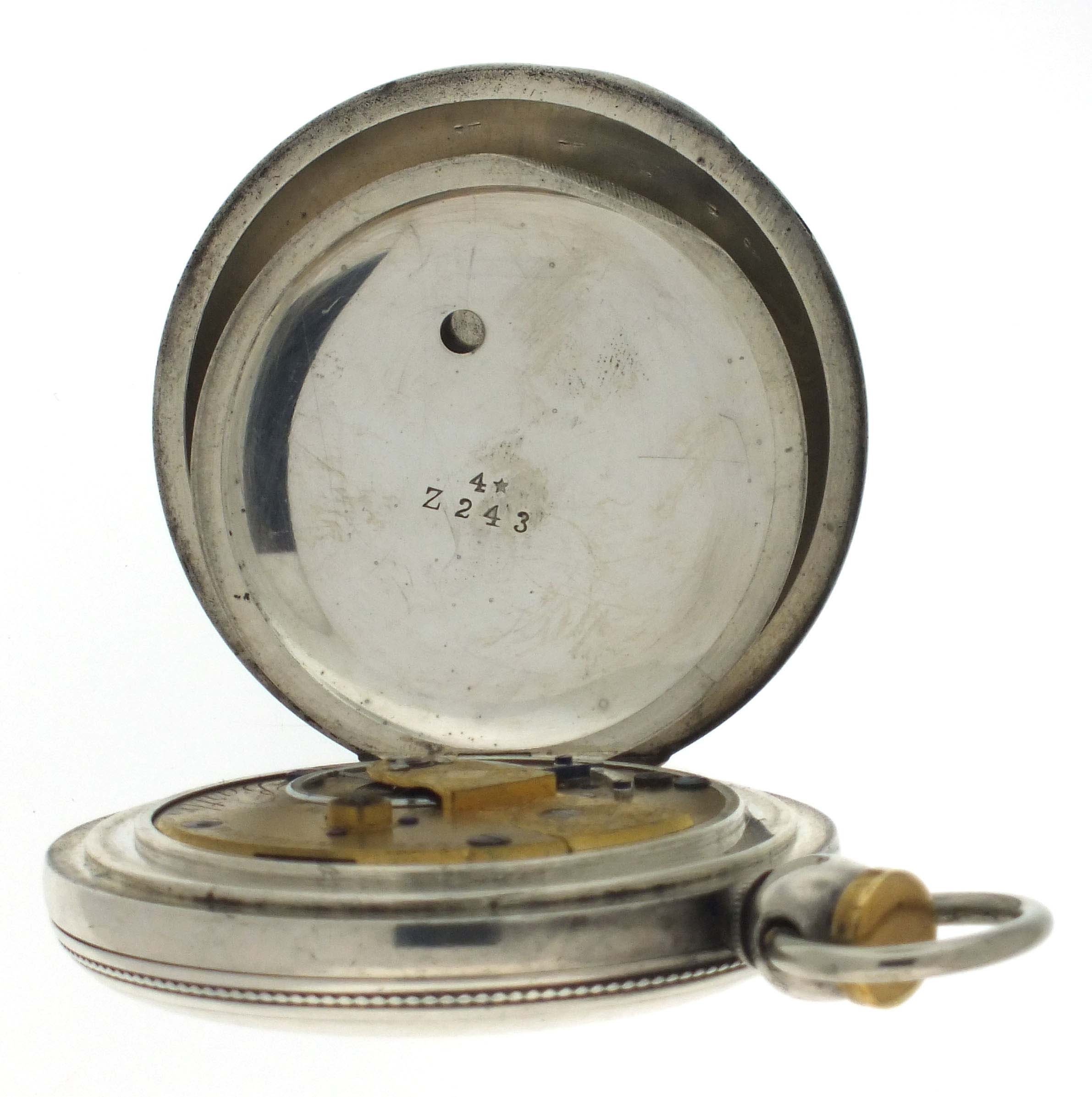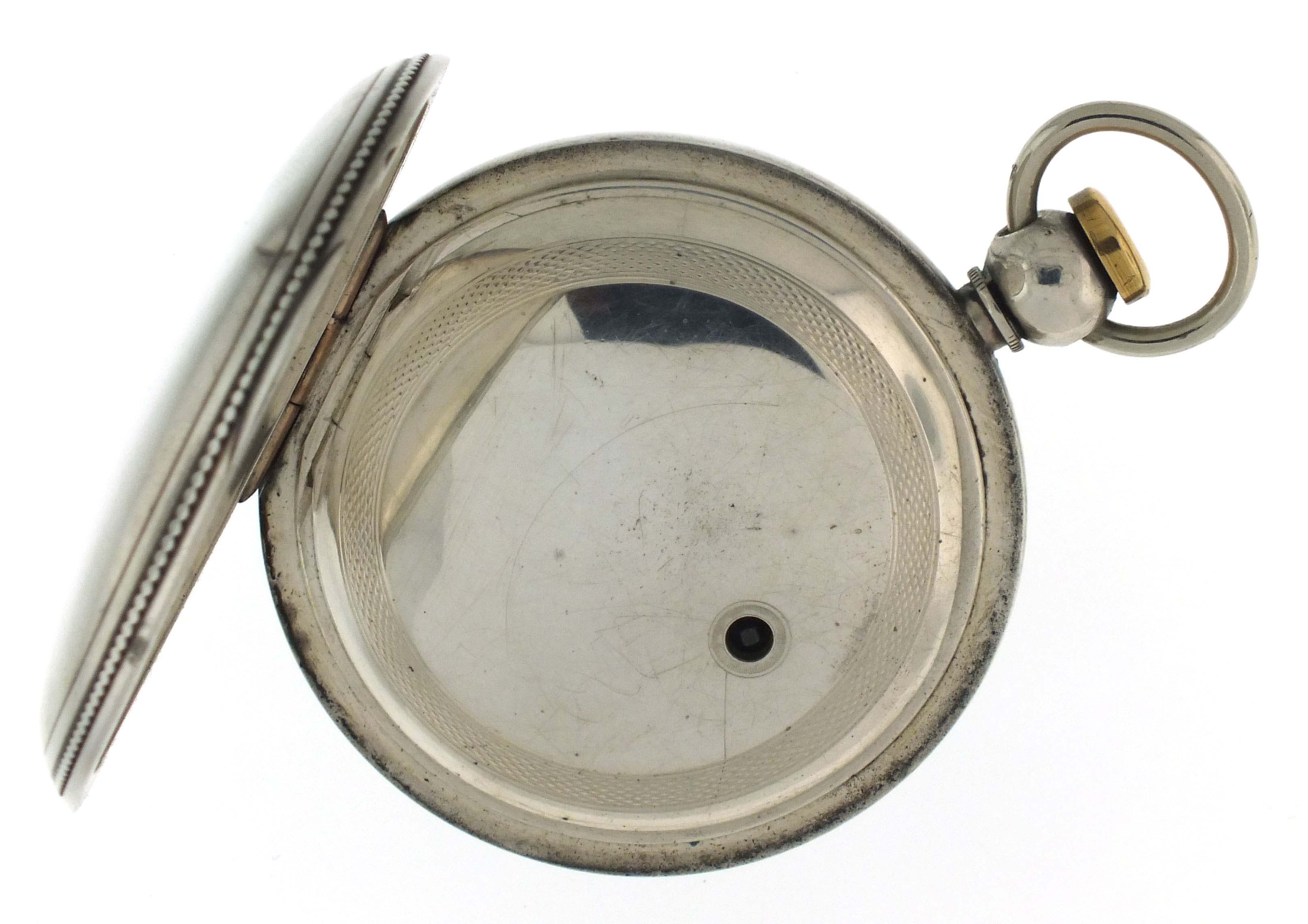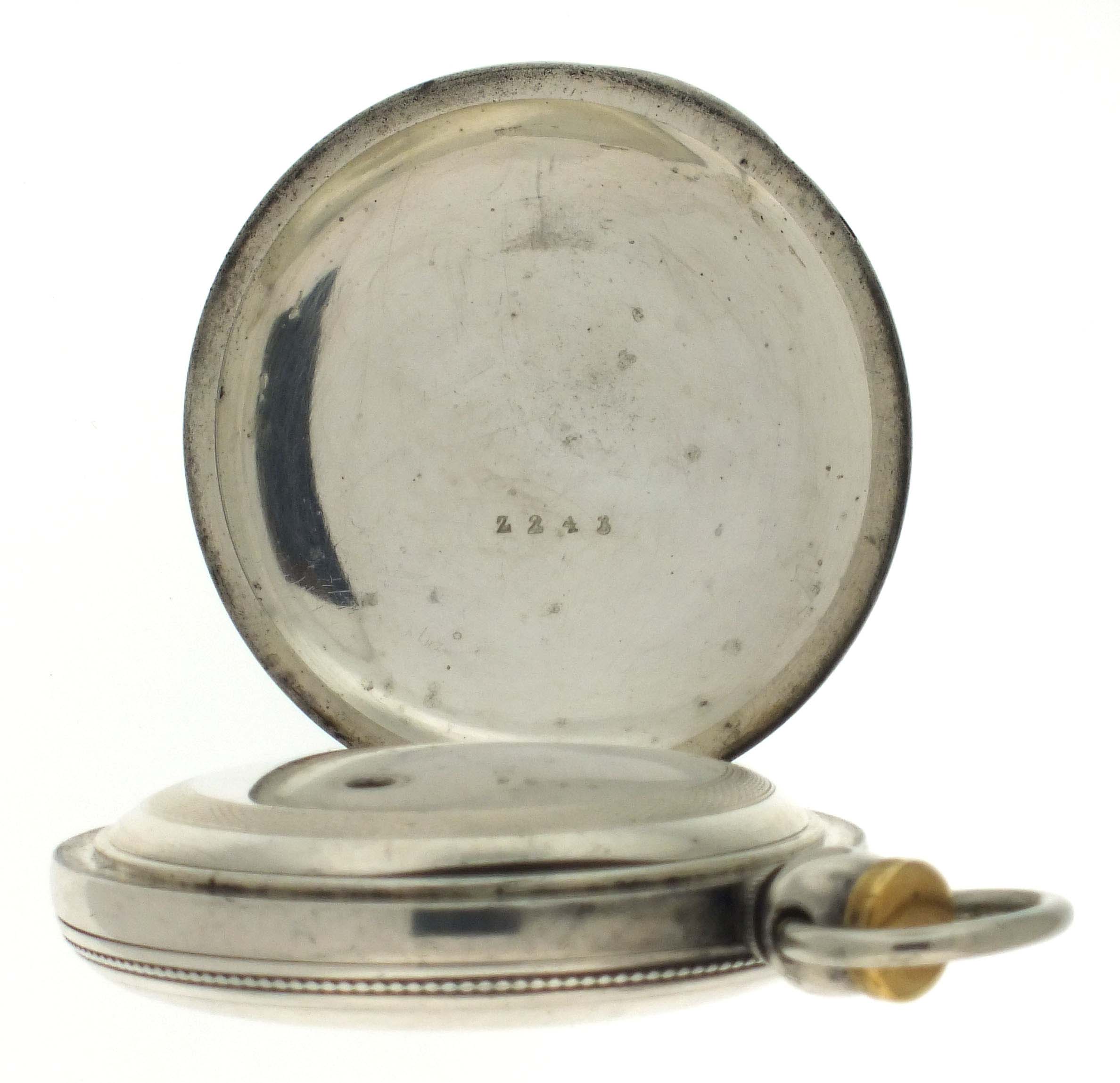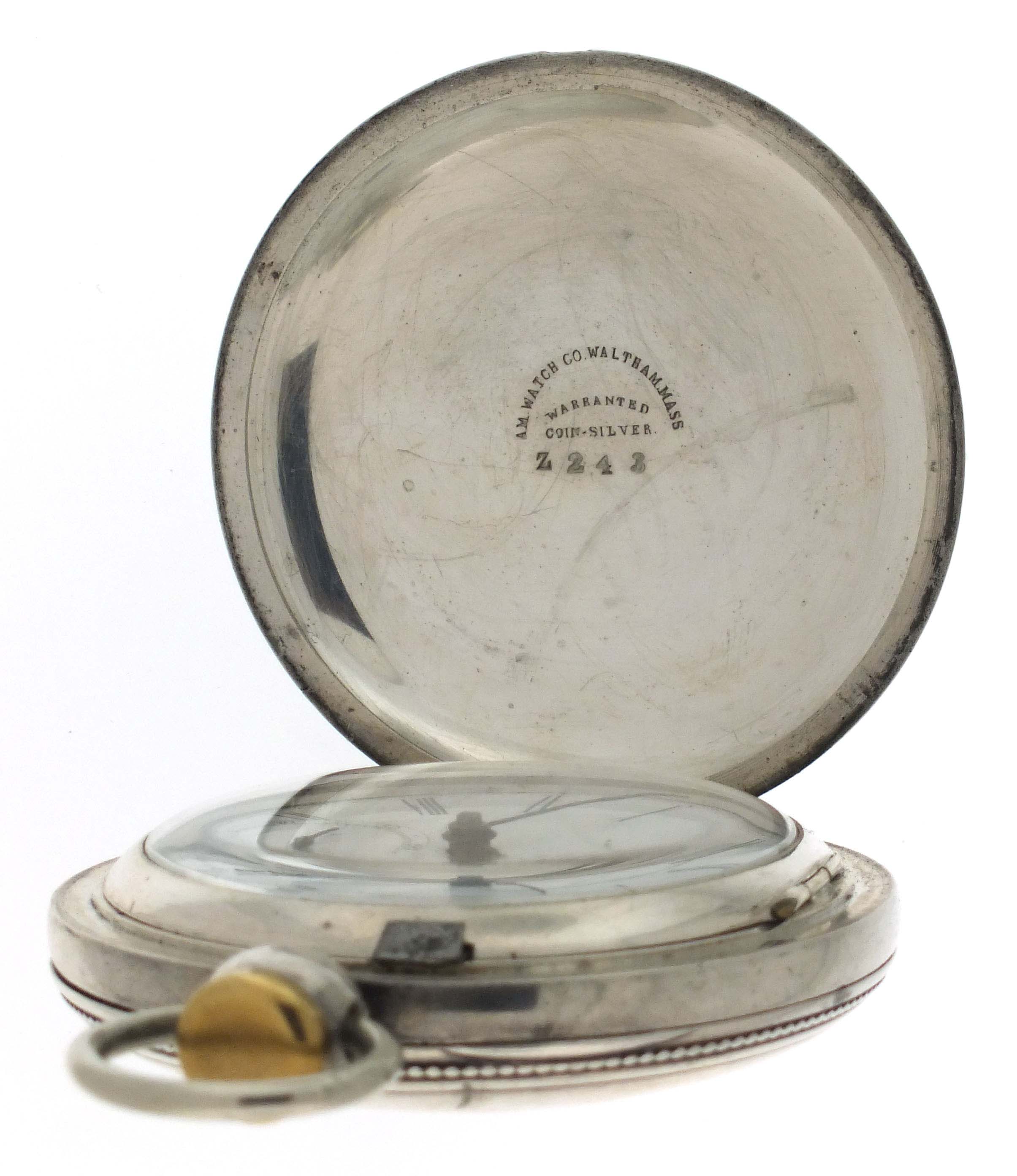 American Waltham Watch Co., Waltham, Mass., a Civil War era "P.S. Bartlett" pocket watch, 18 size, 11 jewels, key wind and set gilt plate movement with lever escapement and steel balance in a 4 oz. coin silver hunting case with engraved cartouche on front cover, roman numeral white enamel dial signed "American Watch Co." with blued steel spade hands, serial #26839