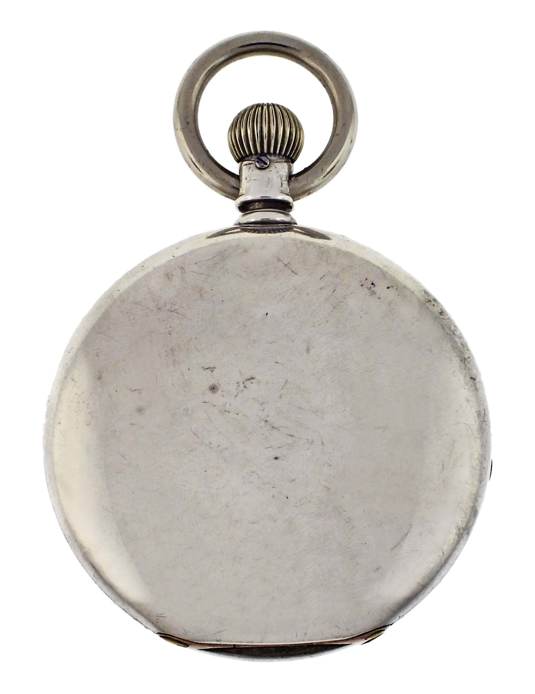 CASE: Dings; Very fine scratches on outer surface of case; Fine scratches on inner surface of case; Cuvette with minor case knife marks and scratches; Front cover with very minor gap at band when closed due to wear at catch; Crystal with edge chips; Bow and crown replaced; Precious metal content marked. DIAL: Faint hairlines, 6:00; Tiny chips at center of seconds bit; Glued chip and filled loss at 11:00; Edge flakes and small chips, most concealed by bezel. HANDS: Minor oxide; Seconds replaced. MOVEMENT PLATES: Fine scratches on plate; Scuff on barrel bridge; Spotting and minor staining; Regulator and click with specks of oxide. MOVEMENT FUNCTION: Running order (winds, sets and ticks).