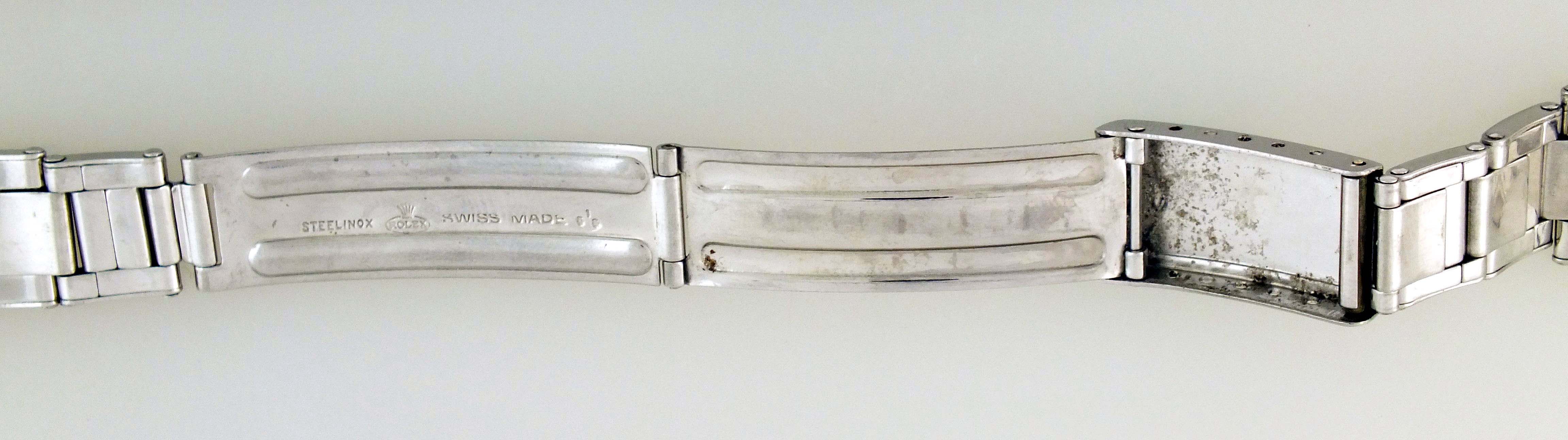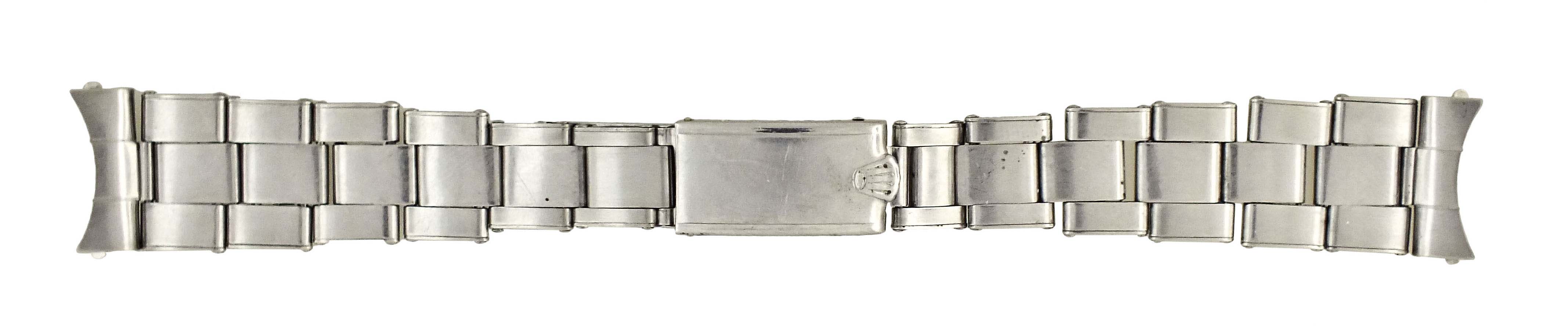 Rolex, Switzerland, a mid 20th century riveted Oyster expansion bracelet, clasp with small Rolex logo and marked "Steelinox Swiss Made 1 58", the 19mm end links marked 57