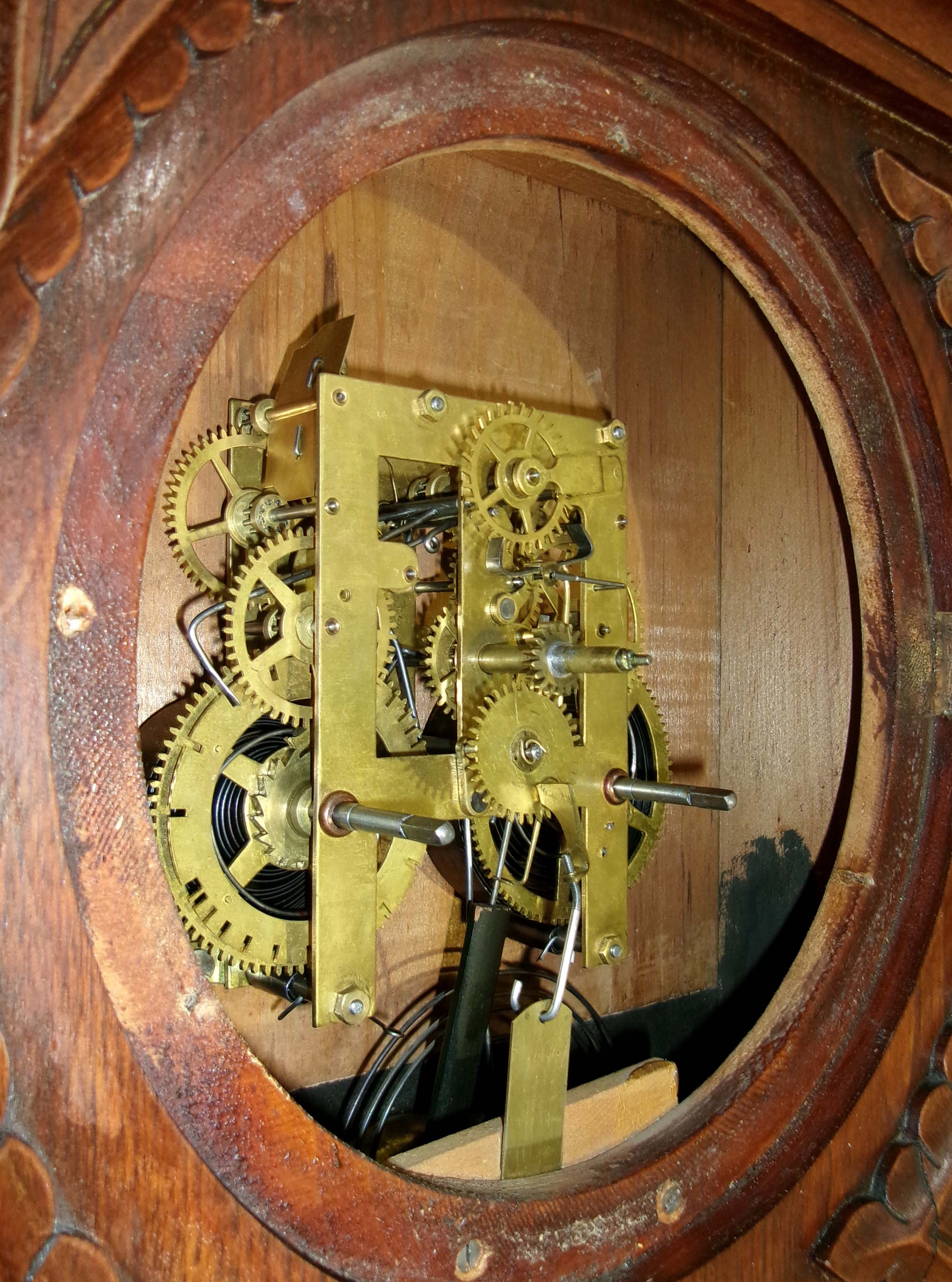 case in very good condition with original finish with some minor scrapes; the two middle decorative panels on the case front show vertical age splits; both time and calendar dials in excellent condition; all hands are original; both bezel glasses original; signed movement; overall a very attractive example of this seldom seen model.