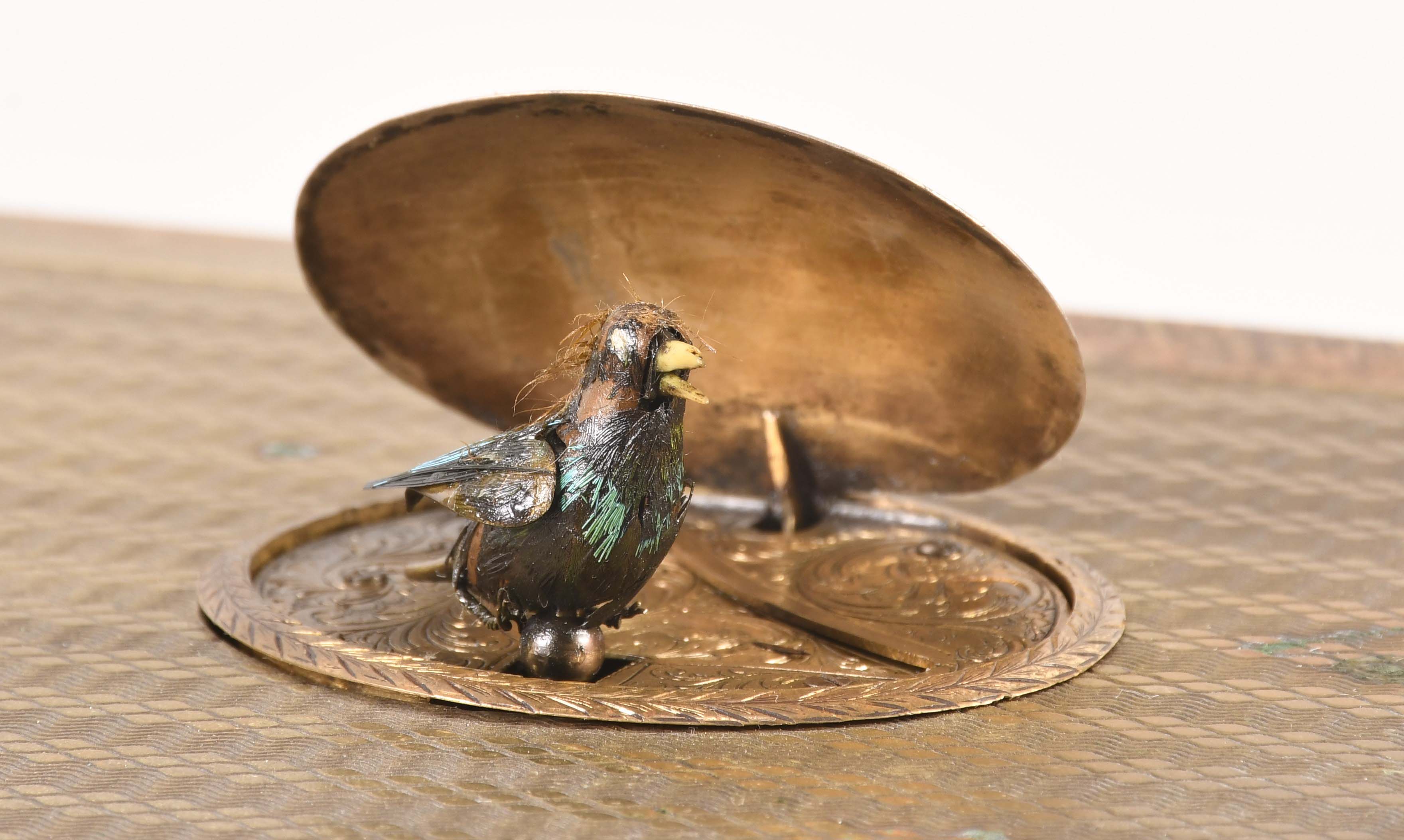 brass and cast brass case is in good condition, it will benefit from a cleaning and polishing, enameled dial is in fine condition with original hands, the bird automaton operates on the hour, but the bellows that produces the sound is not working and will need service.
