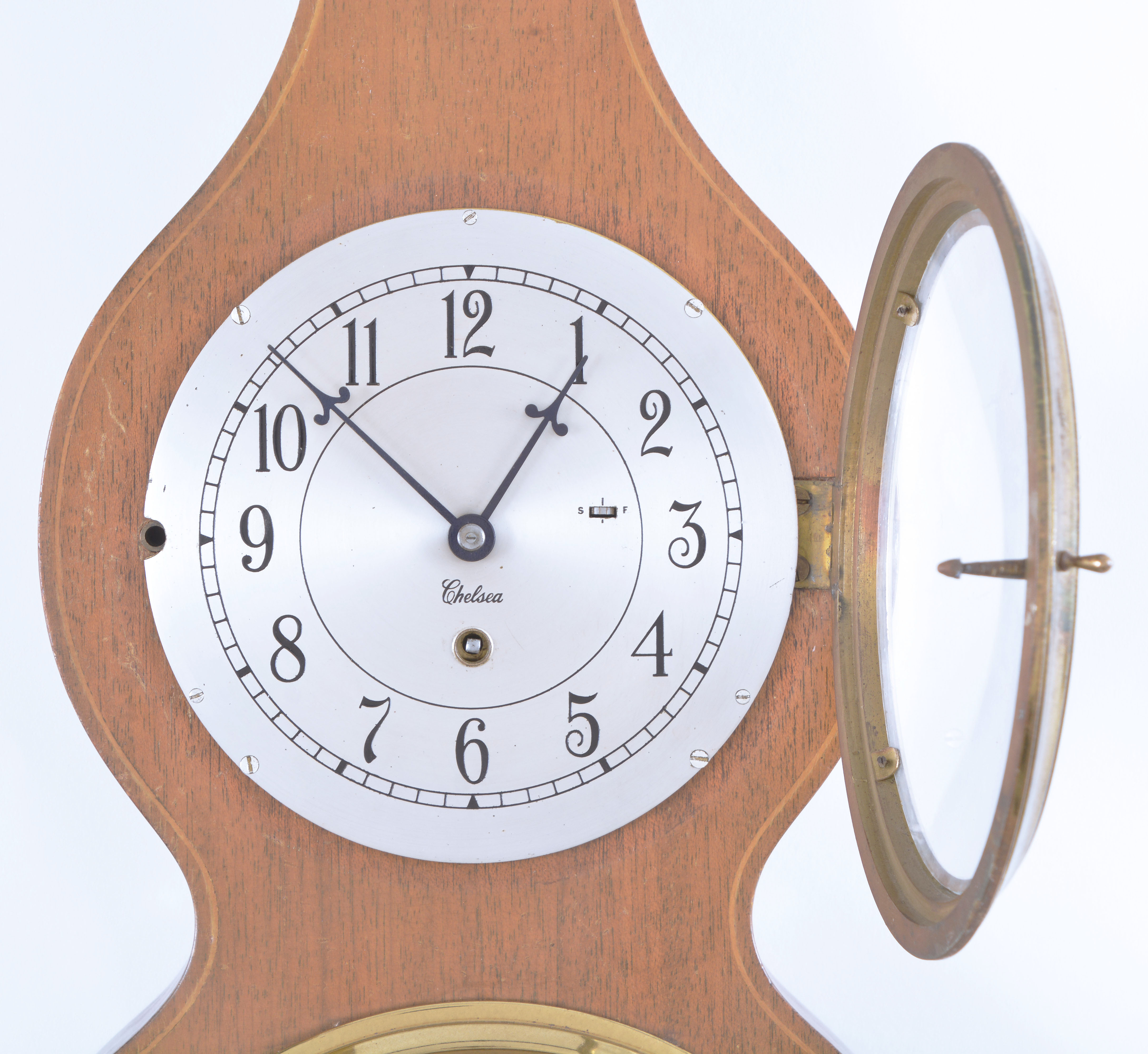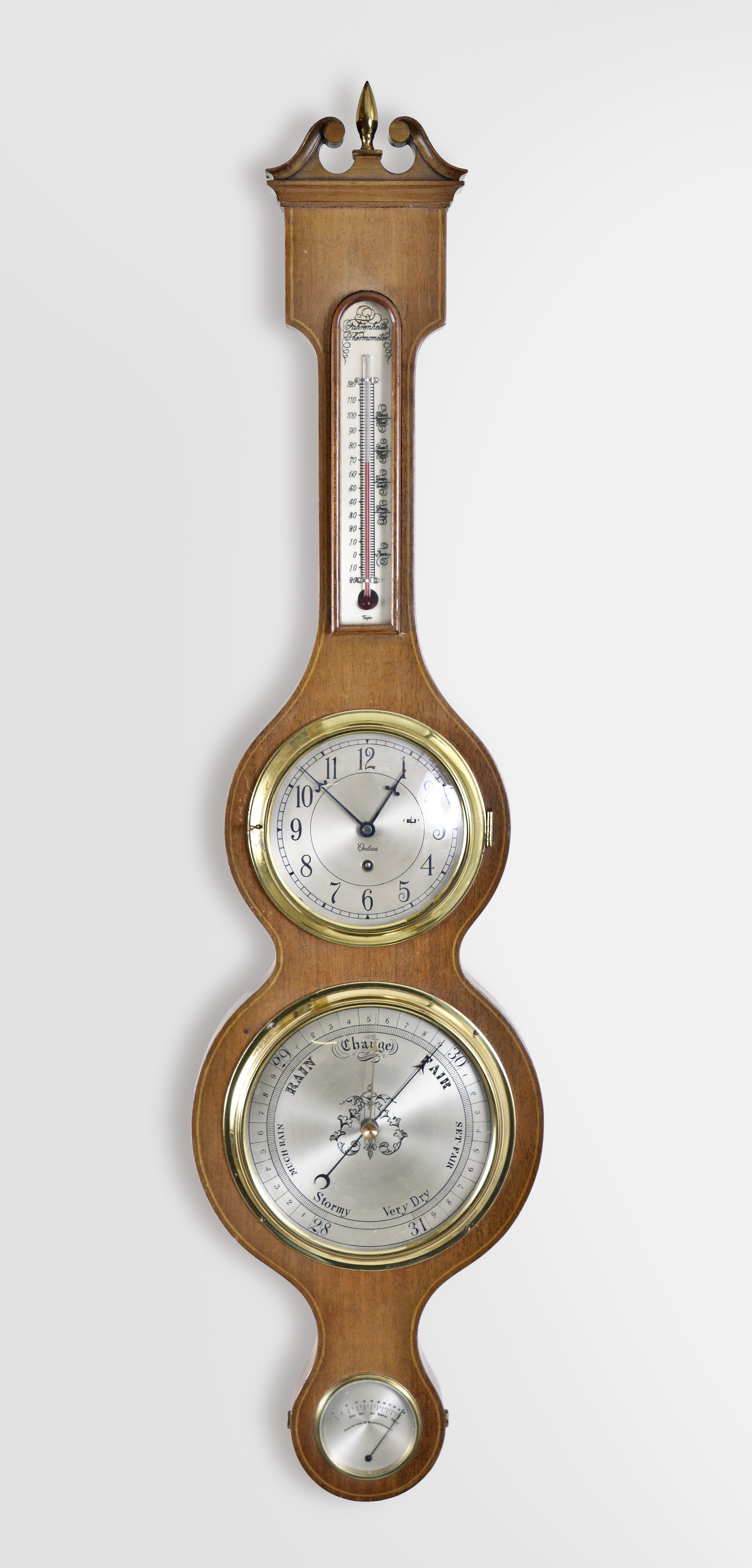 Chelsea Clock Co., Boston, Mass., "Carver" 8 day, spring brass lever movement wall barometer with a timepiece movement, serial #540555.