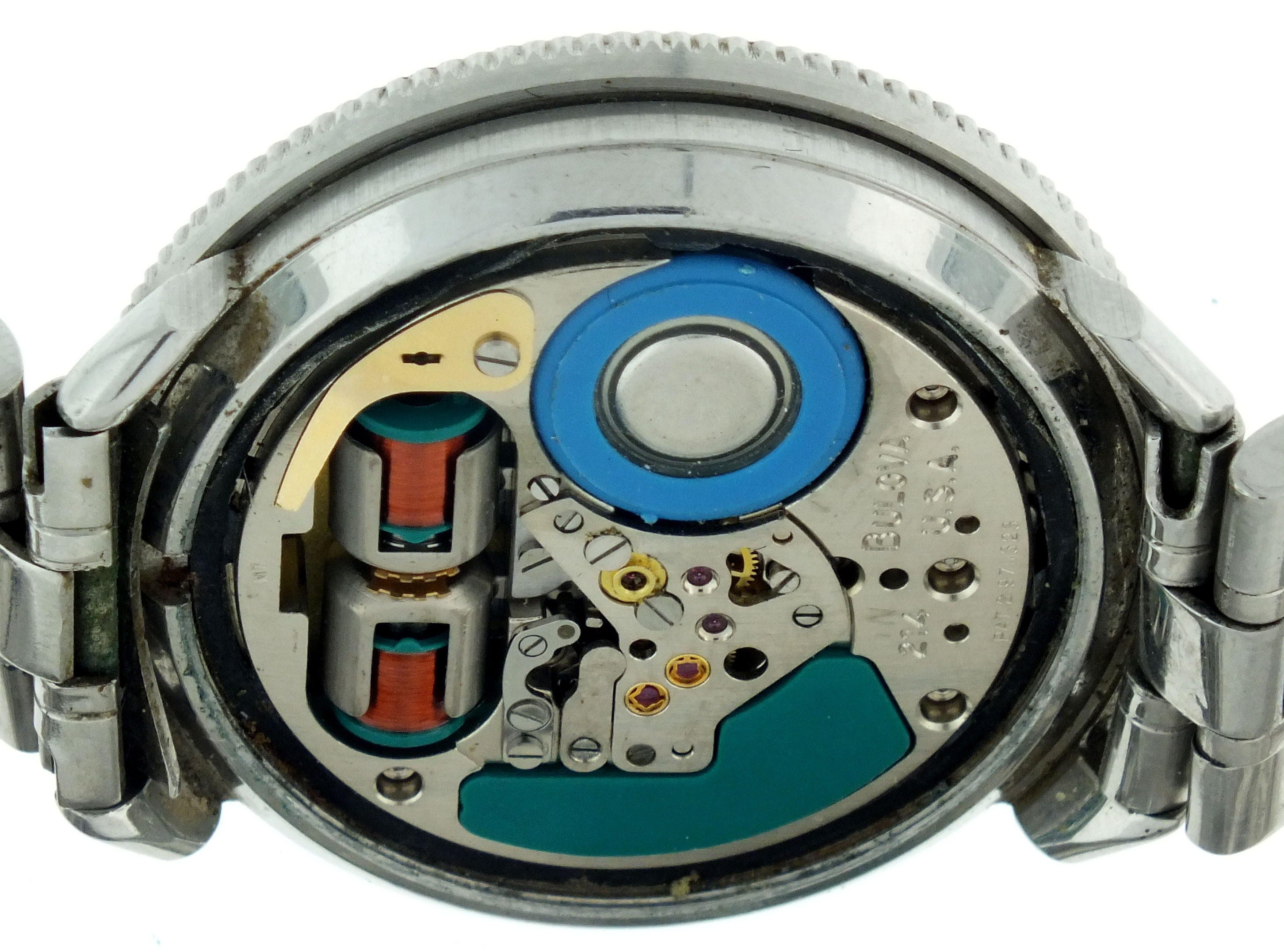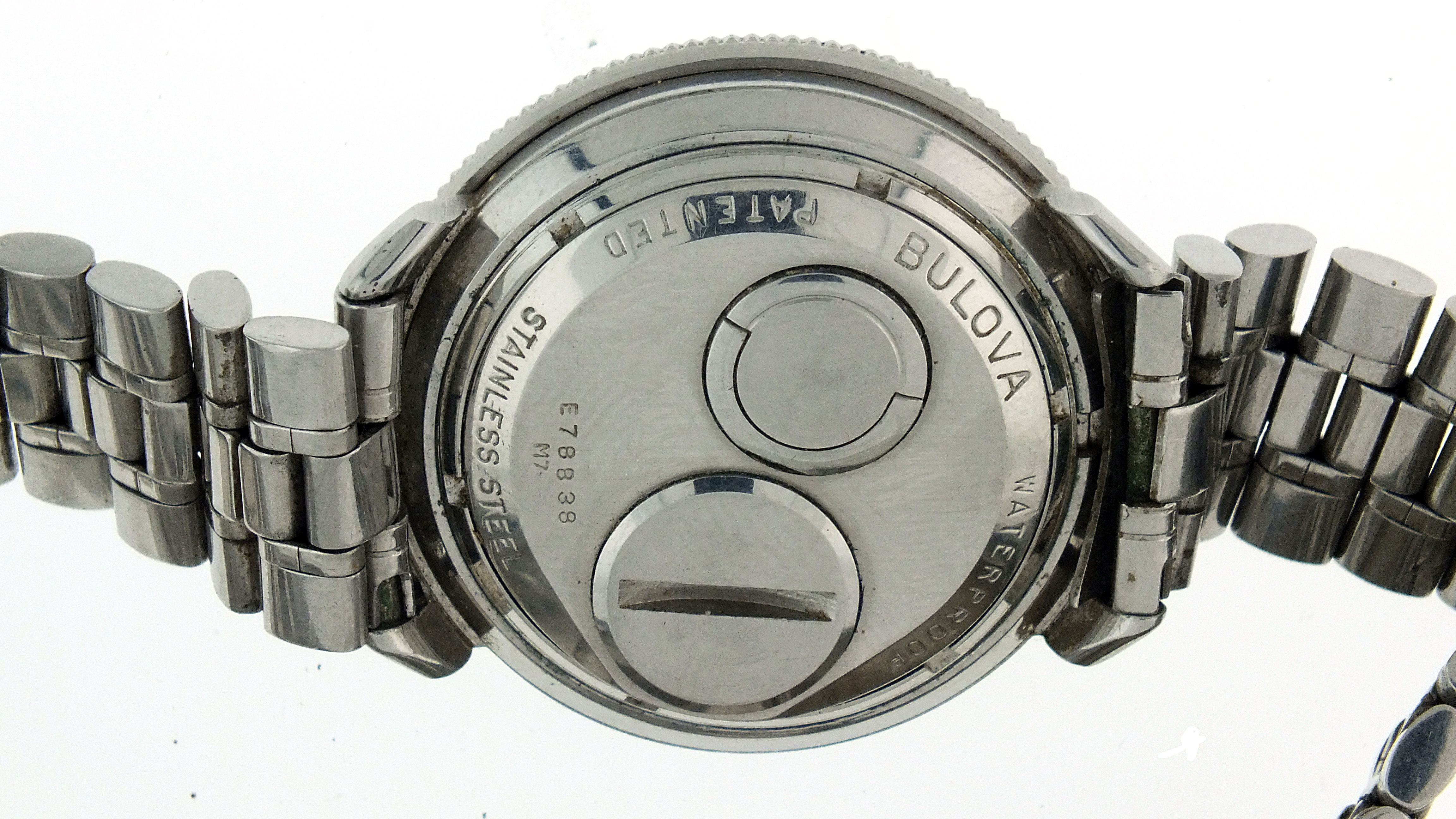 model 203 hums, hands move briefly, case with dings and scratches, one small dent on underside of case at 4:00, plastic crystal with scratches, bracelet ends trimmed, dial good, hour and minute hands replaced, precious metal content marked, Astronaut running, case with minor dings and scratches, bezel with mark from case press die, plastic crystal with scratches, bracelet with wear and scratches, dial good, hands with minor dirt, second time zone hand with minor oxide, multiple lots sold as is, no returns